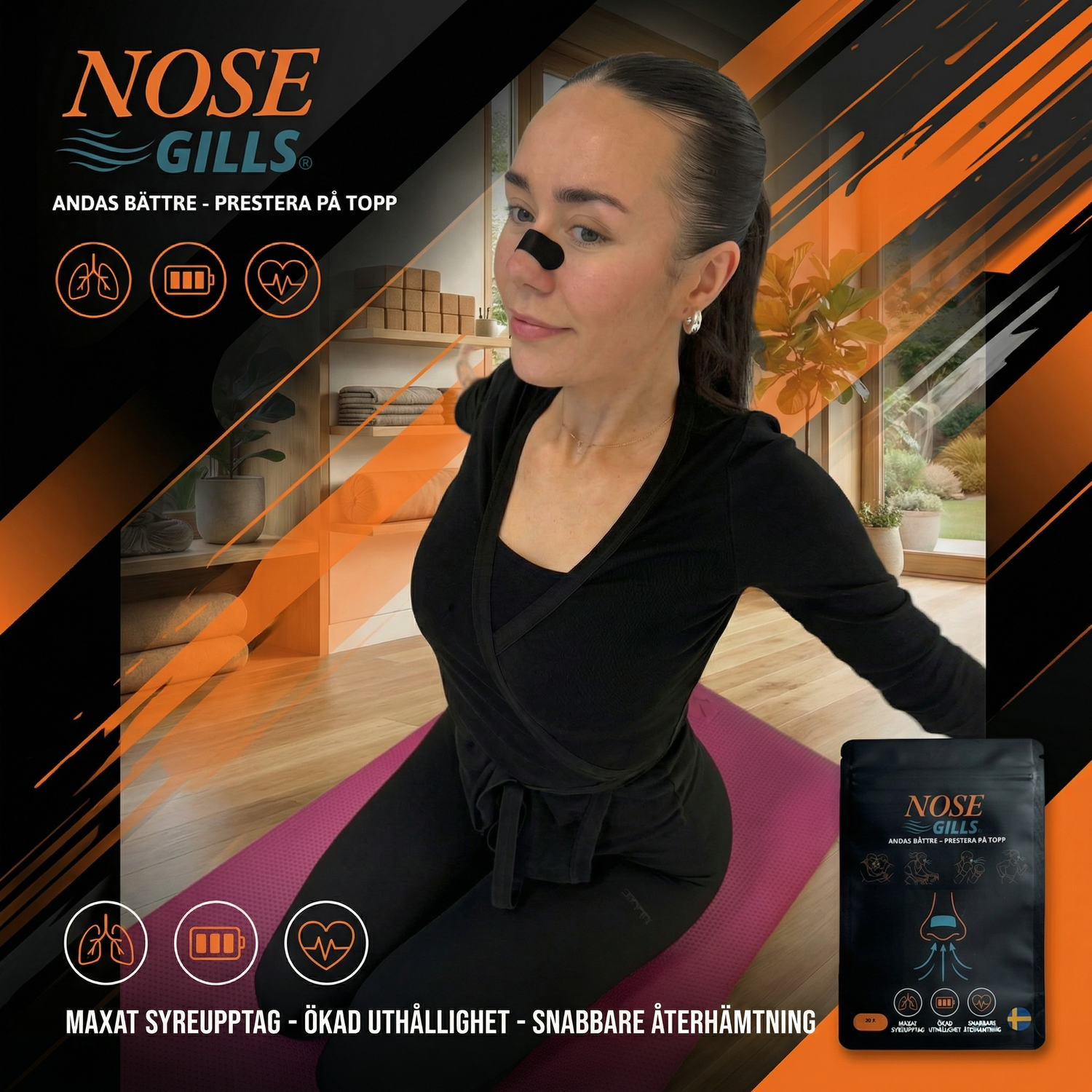 Nose Gills lyfter näsvingarna utifrån och öppnar upp näsgångarna så att mer luft kan passera. Det gör det lättare att andas genom näsan, vilket ger bättre syreupptag, jämnare puls och ökad prestation under träning.